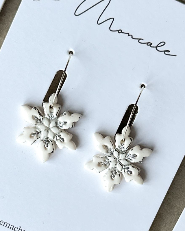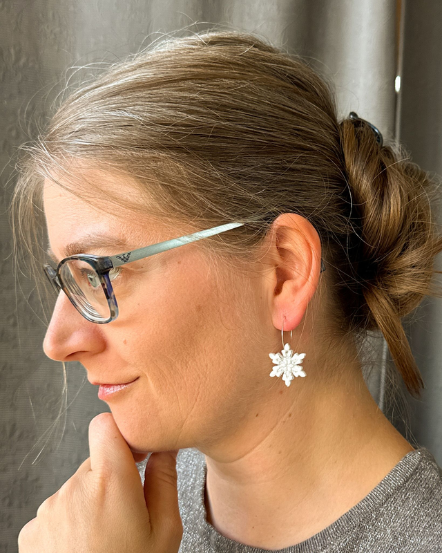 Ein klassisches Schneeflockenmotiv in elegantem Weiß – zeitlos, schlicht und dennoch besonders. Dieses Paar fängt die Schönheit eines stillen Wintertages ein. Ein funkelnder Begleiter für die gesamte Saison.