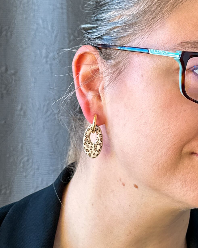 Schlicht, aber alles andere als langweilig. Die ovalen Anhänger bringen Bewegung und Muster in den Look und lassen sich wunderbar vielseitig kombinieren. Die Creolen können auch ohne Anhänger getragen werden.