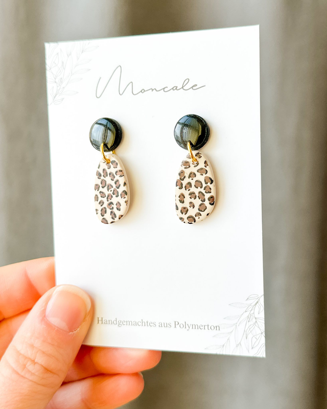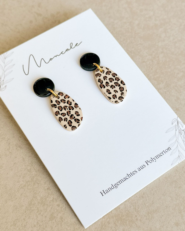 Organische Formen treffen auf Leopardenmuster. Diese Ohrringe wirken modern, ruhig und dennoch ausdrucksstark – ideal für minimalistische Looks mit einem besonderen Detail.