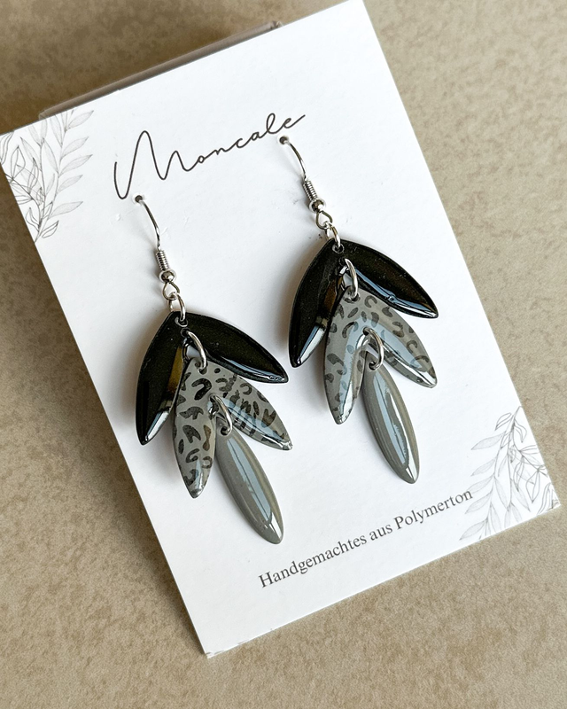 Sanft schwingend und angenehm leicht. Diese Ohrringe verbinden natürliche Formen mit einem modernen Leopardenmuster – ideal für jeden Tag.