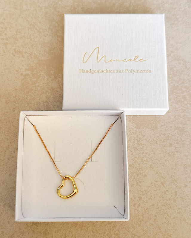 Eine zarte Halskette mit Herzanhänger, die Nähe und Wärme ausstrahlt. Passt wunderbar zu Alltag, Büro oder besonderen Momenten 💛
