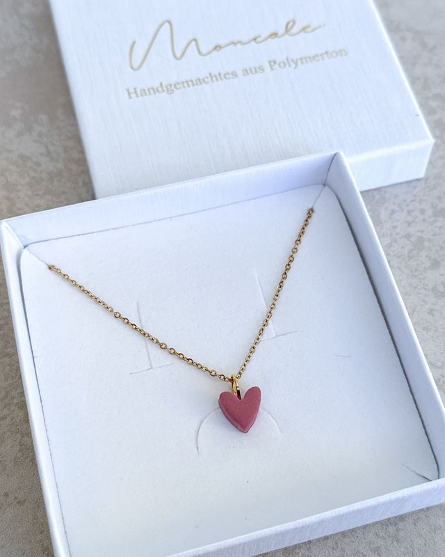 Zarte Herz-Halskette mit handgemachtem Anhänger aus Polymerton. Ein liebevolles Schmuckstück, das sich perfekt als Geschenk oder täglicher Begleiter eignet.