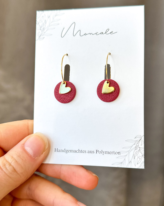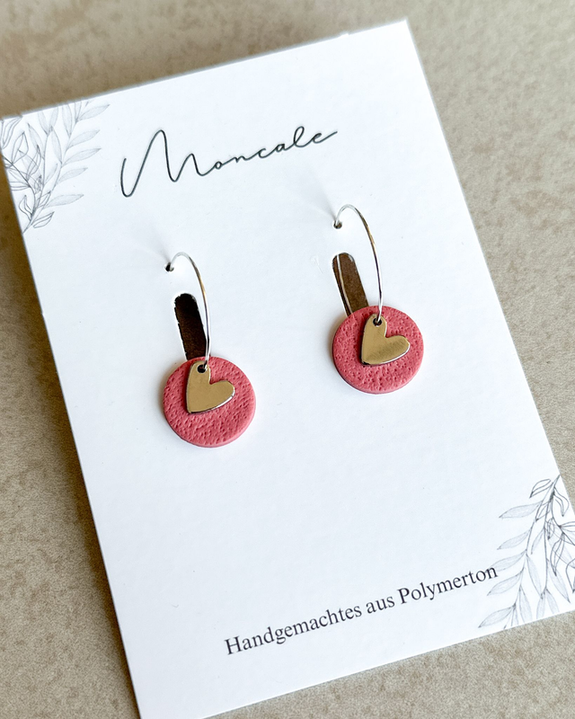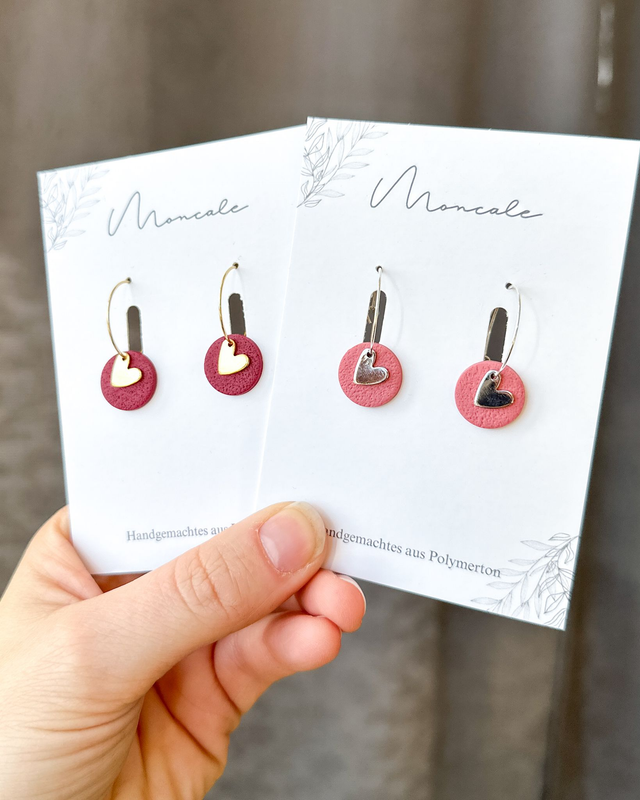 Schlichte Ohrringe aus Polymerton mit einem Herz aus Silber oder Gold. Handgemacht, leicht zu tragen und perfekt für alle, die minimalistischen Schmuck mit Bedeutung lieben 💛