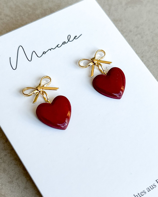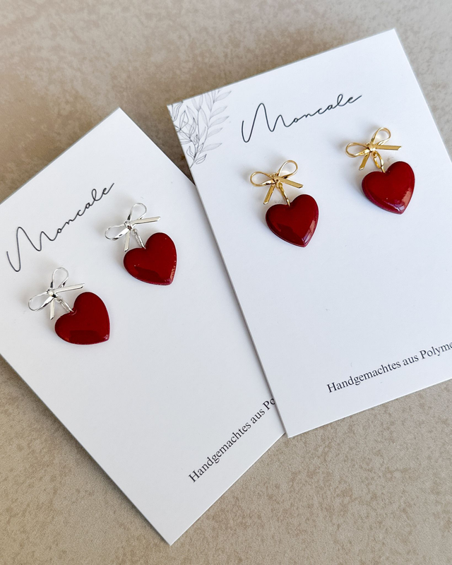 Diese handgemachten Herz-Ohrringe mit Schleifenmotiv stehen für Verbundenheit und Liebe. Ein besonderes Design aus Polymerton, das Eleganz und Romantik vereint 💛