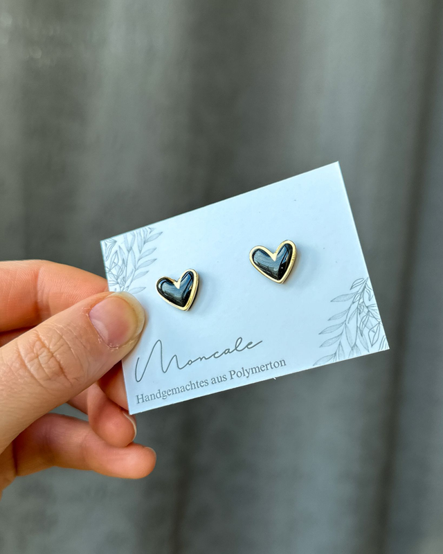 Elegante Herz-Ohrstecker mit feiner Umrandung in Silber oder Gold. Handgemacht aus Polymerton und ideal für alle, die klassischen Schmuck mit besonderem Detail suchen 💛