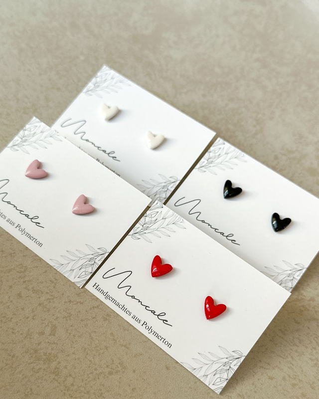 Schlichte Herz-Ohrstecker aus Polymerton – handgemacht, leicht und zeitlos. Perfekt für den Alltag oder als dezentes Liebesstatement 💛